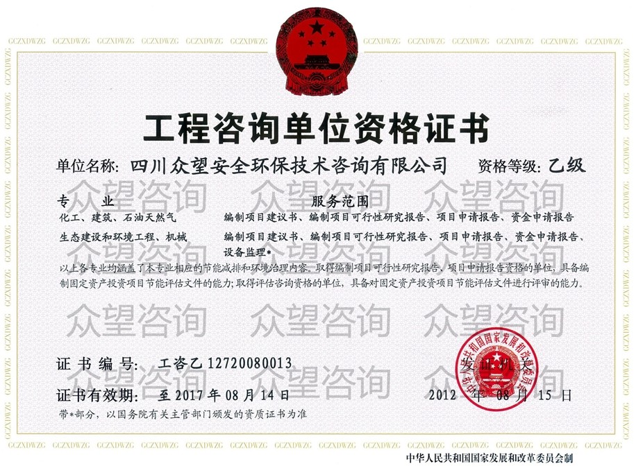 四川眾望安全環(huán)保技術咨詢有限公司 電 話:028-86258172/86258173/028-86258174/86258095 傳 真:028-86258093/86258552